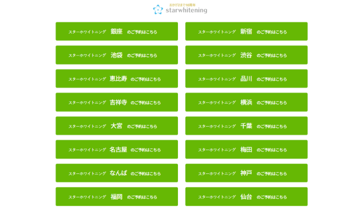 スターホワイトニングは全国に15店舗以上展開していますが、ホワイトニングカフェは全国に約60店舗あり、より通いやすいのが特徴です。